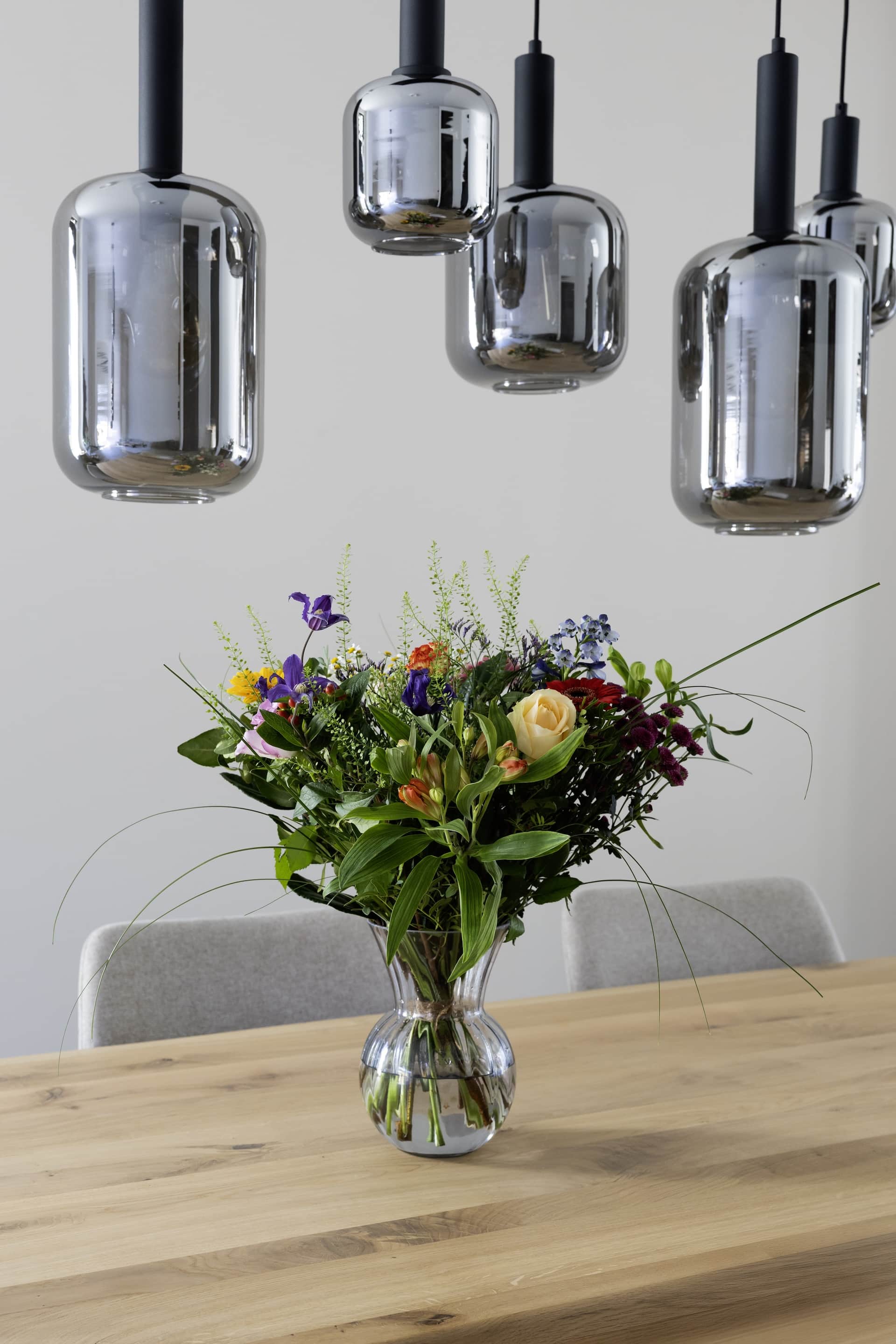 • Snijd de stelen schuin af (1–2 cm) met een scherp mes of schaar. Zo nemen de bloemen beter water op.